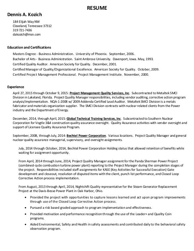 D Kozich Resume 2015